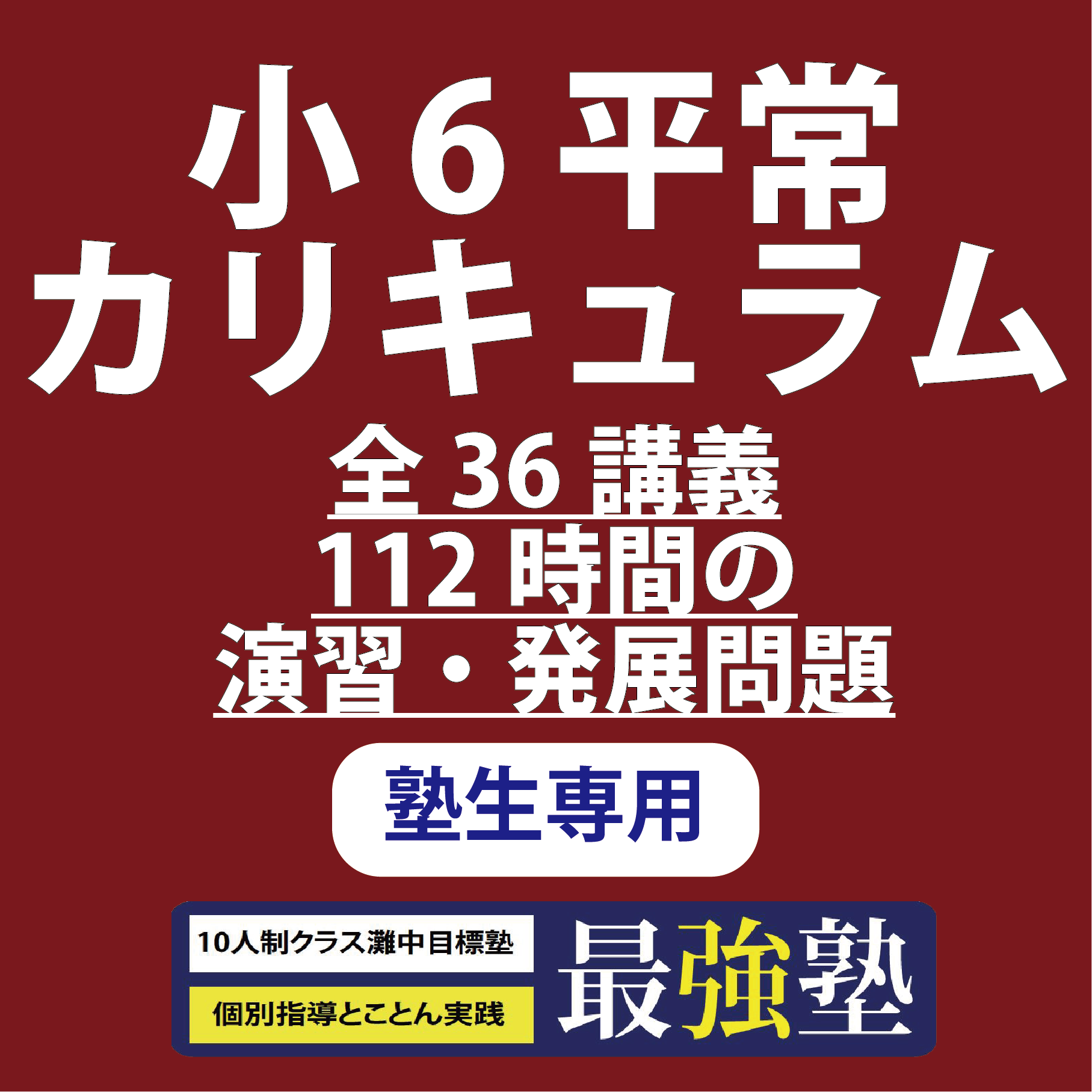 小6は、中学入試に向けた総仕上げの1年です。そしてこの小6平常カリキュラムは、「基礎力を伸ばすこと」や「苦手分野を克服すること」をテーマに、小5までに身に付けた基礎知識を再確認し、演習応用問題や発展問題復習を行い、入試に必要な理解能力や処理能力などを身につけていく授業となり、大手進学塾・有名塾などで、最上位クラス・上位クラスの小6生が1年間かけて習う一般授業と同等レベルの授業動画となります。